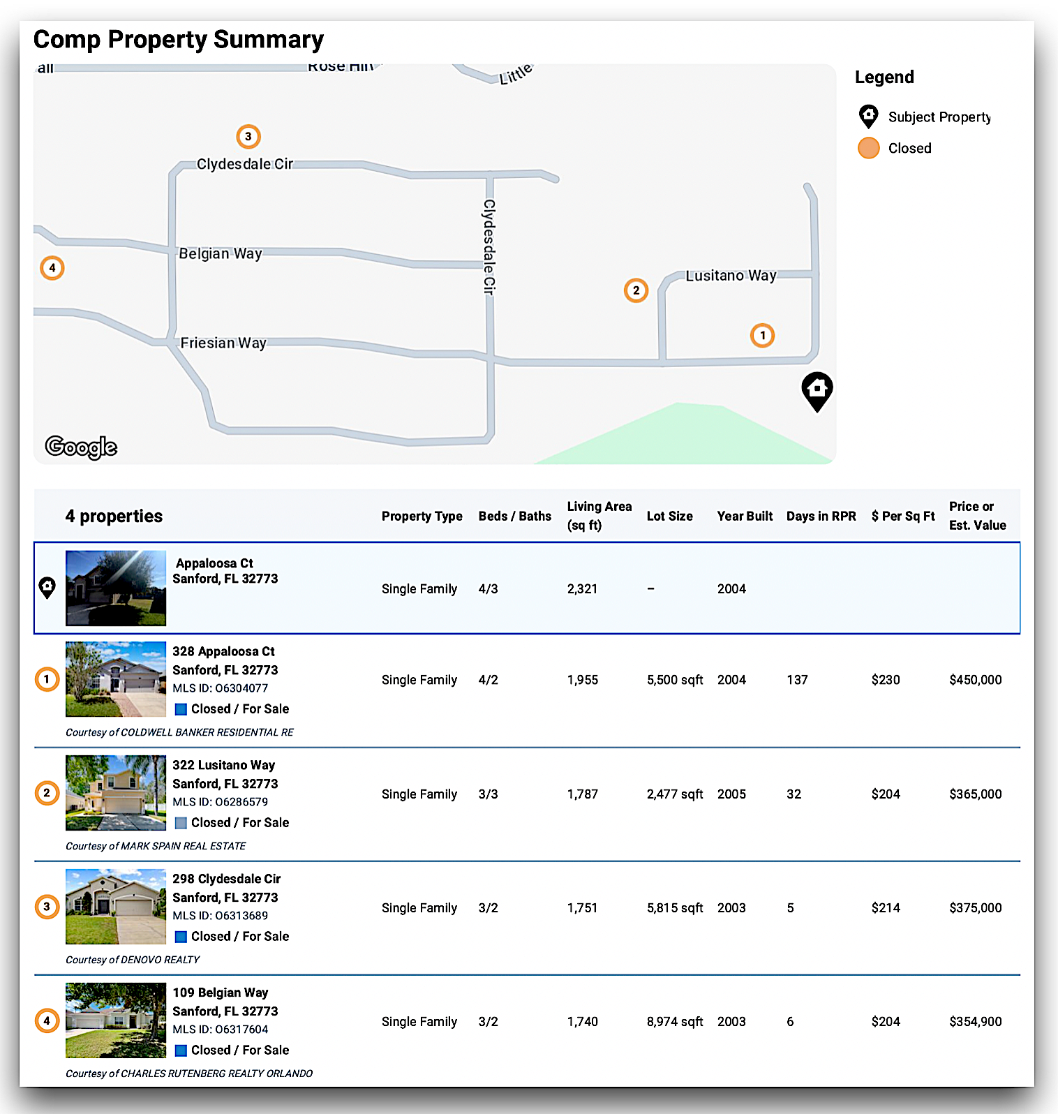 - 290 Clydesdale Cir – 4/2.5 | 2,317 sf | Sold $425,000 | 10/2025 | No Pool