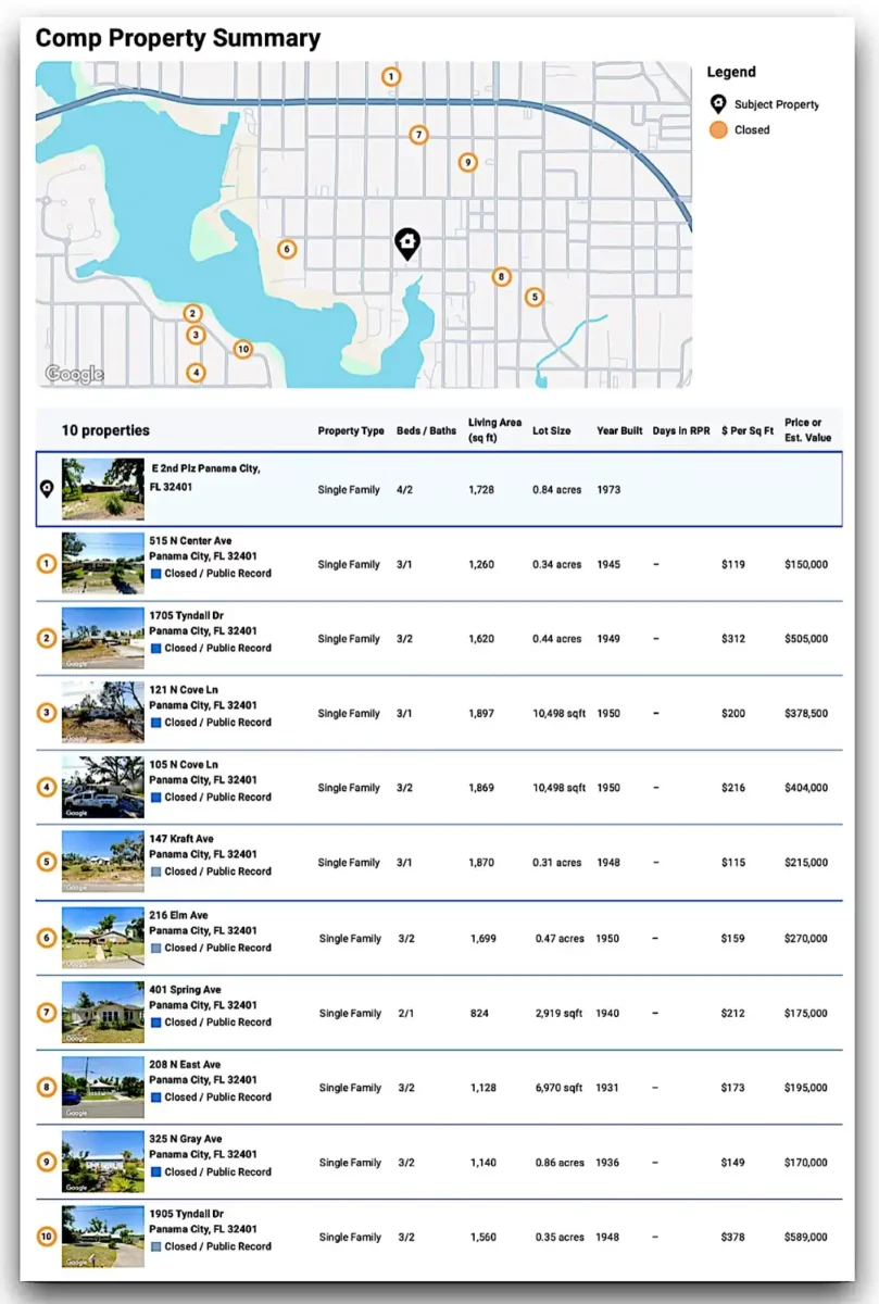 - 1905 Tyndall Dr – 3/2 | 1,560 sf | 1948 | $589,000 ($378/sf) – Premium waterfront, high-end rehab
