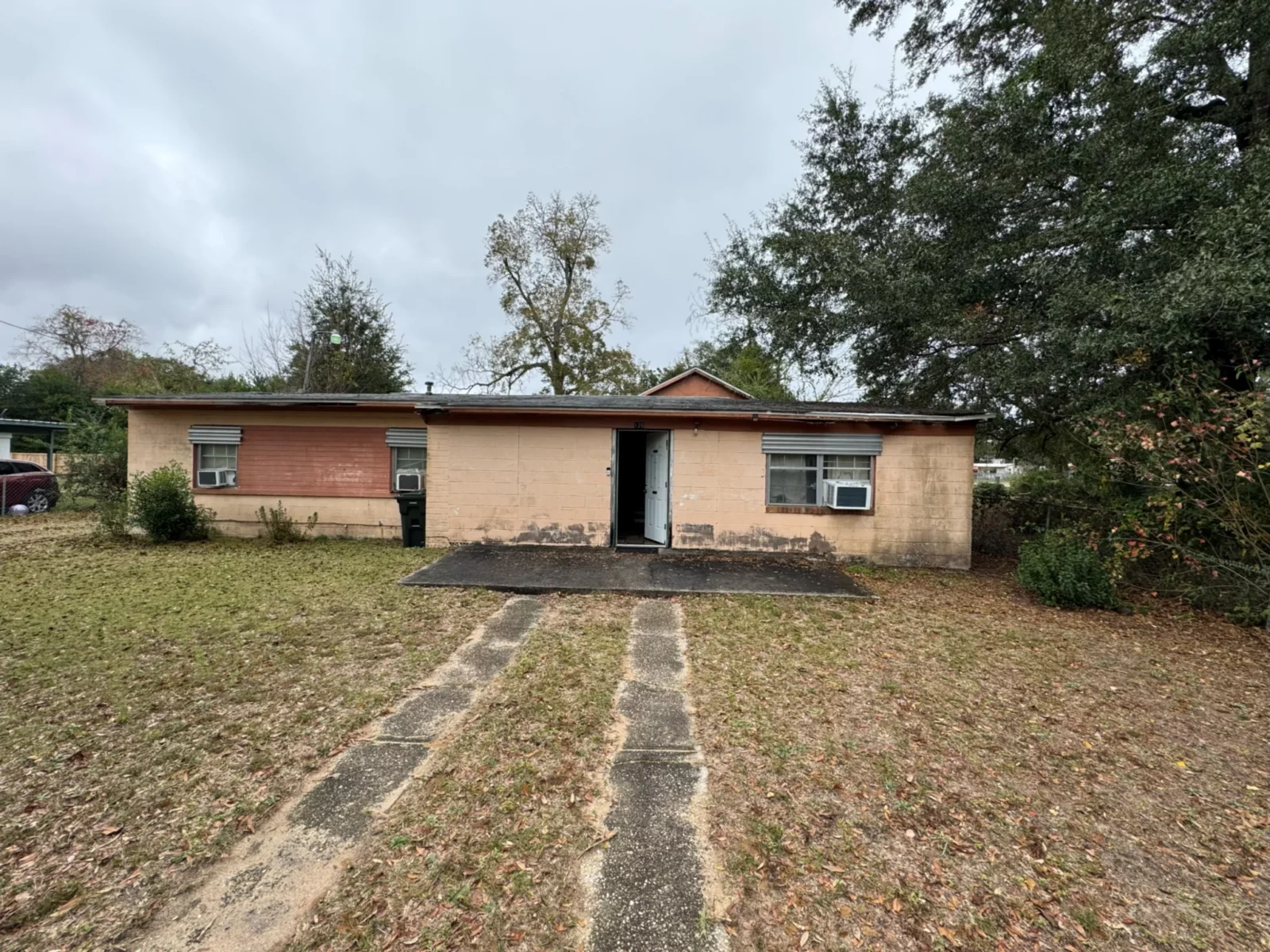 This 3-bed, 2-bath, 1,260 sq ft CBS home sits in the W Madison Dr pocket of Pensacola. Built in 1955 and delivered vacant at closing, the property includes a large detached 2-car garage and will need a full renovation to compete with the surrounding retail sales.