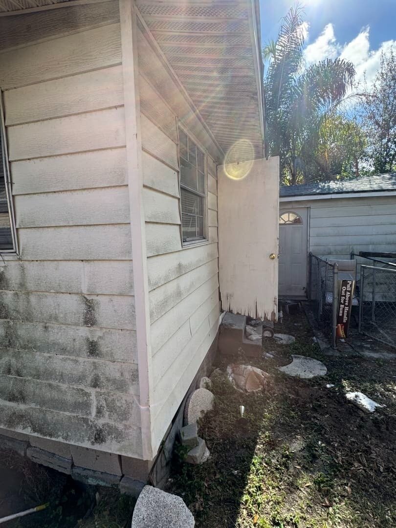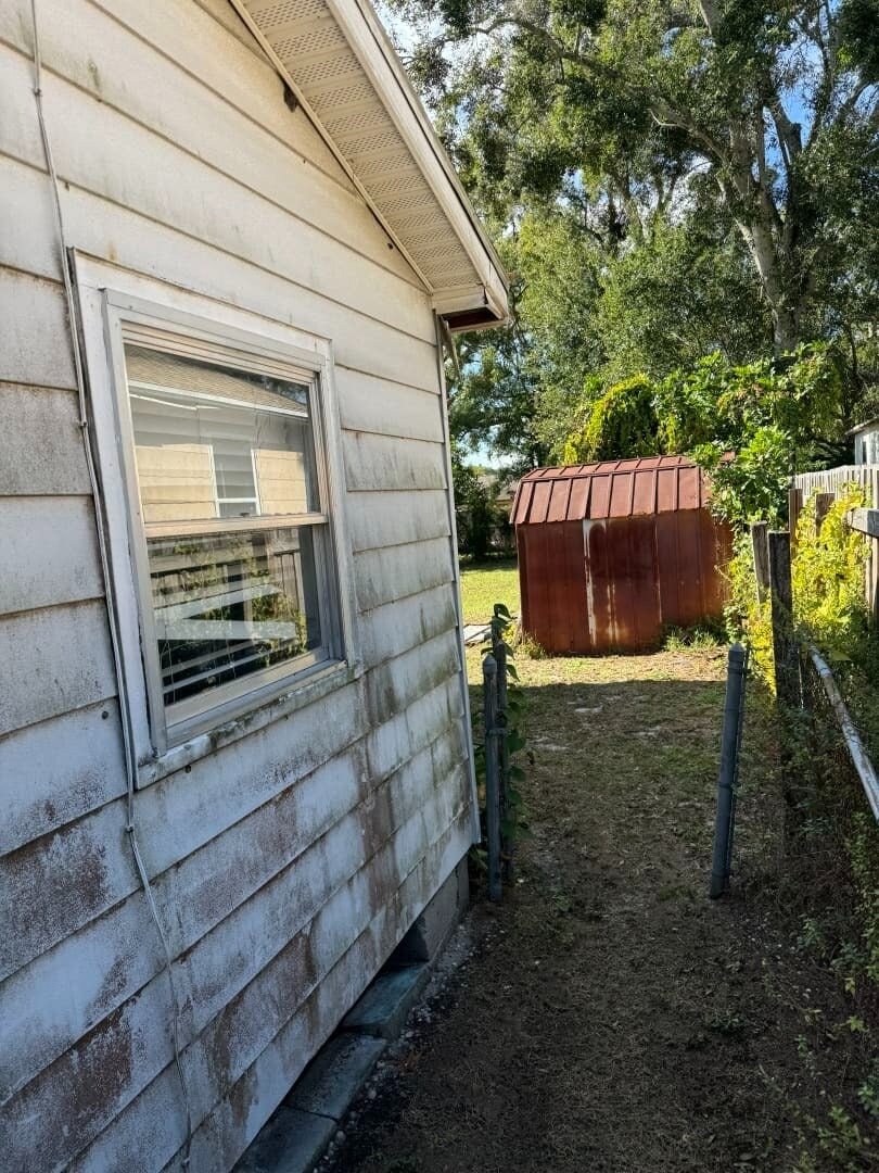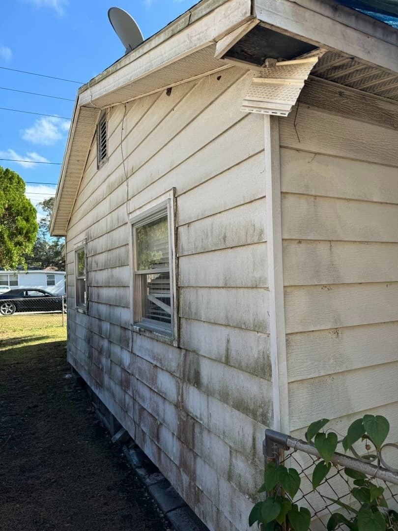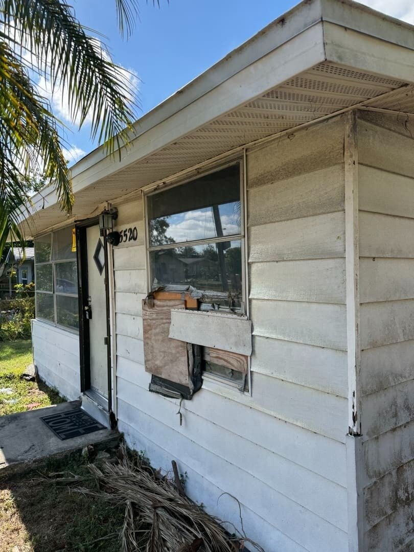 This 3-bedroom, 2-bath frame home has 878 sq ft of living space, including the front porch, which is enclosed and under air. Built in 1950, the property sits in the Lealman / Arcadian Heights pocket of St. Petersburg, where small renovated homes are consistently selling in the mid-$200s to low-$300s. The home will be delivered vacant at closing.