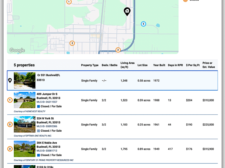 - 🟠 5133 CR 318C – 3/2 – 1,456 sf – $285K ($196/sf) – 1985 – updated