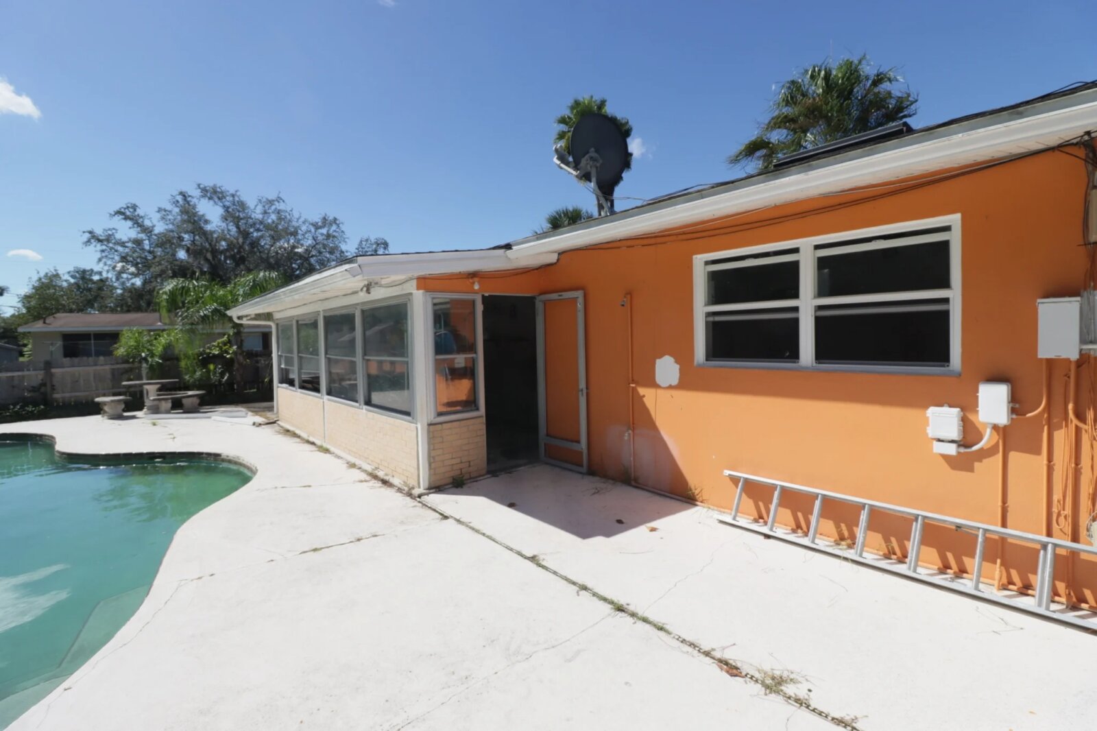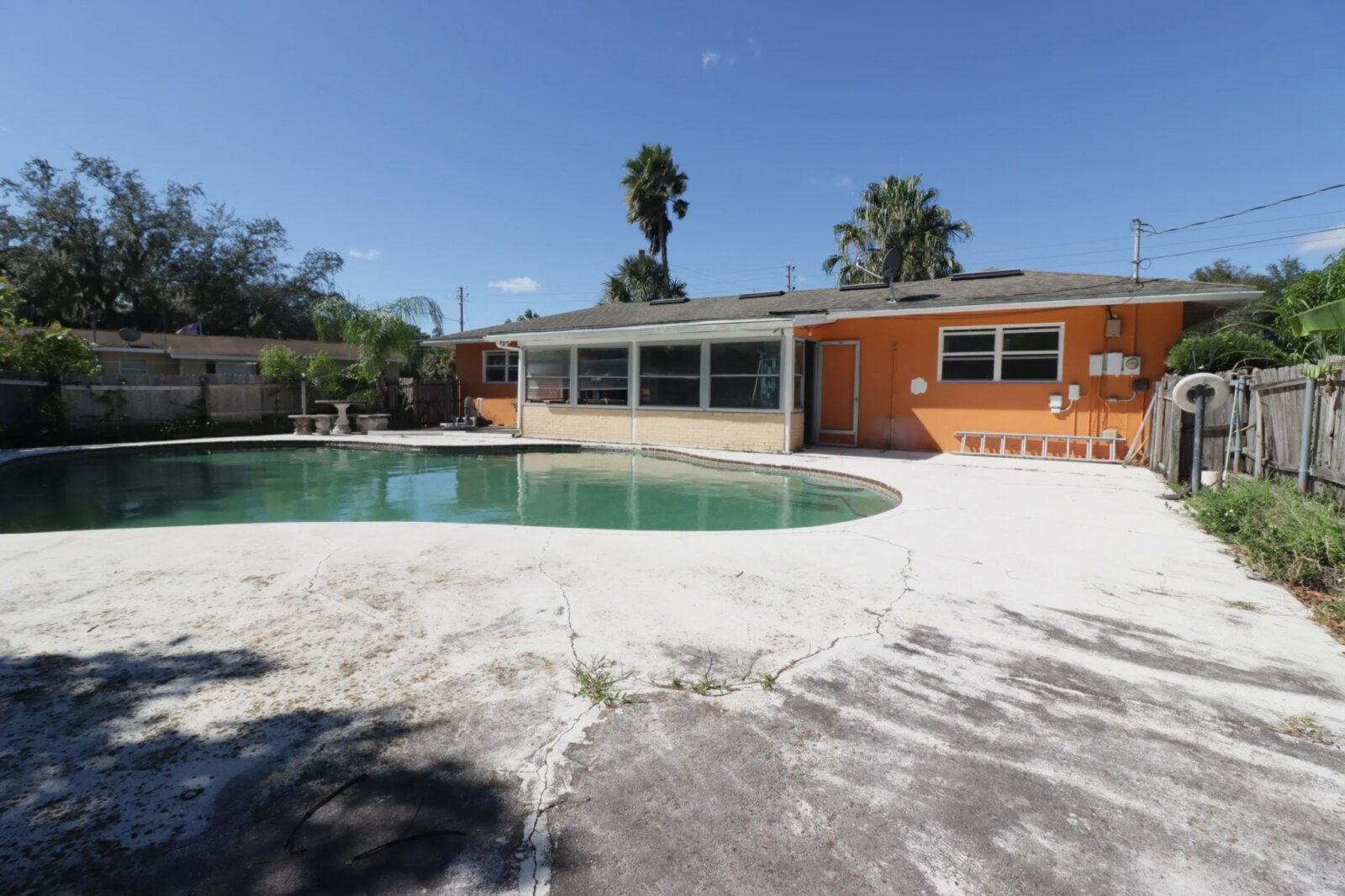 This 3-bed, 2-bath, 1,426 sf CBS pool home built in 1970 sits on a 10,105 sf lot with a 1-car garage in Deltona. The property is vacant and ready for renovation. House is in Flood Zone X (no flood insurance required). Major systems appear original or near end of life — expect to replace roof and HVAC, plus a full interior refresh.