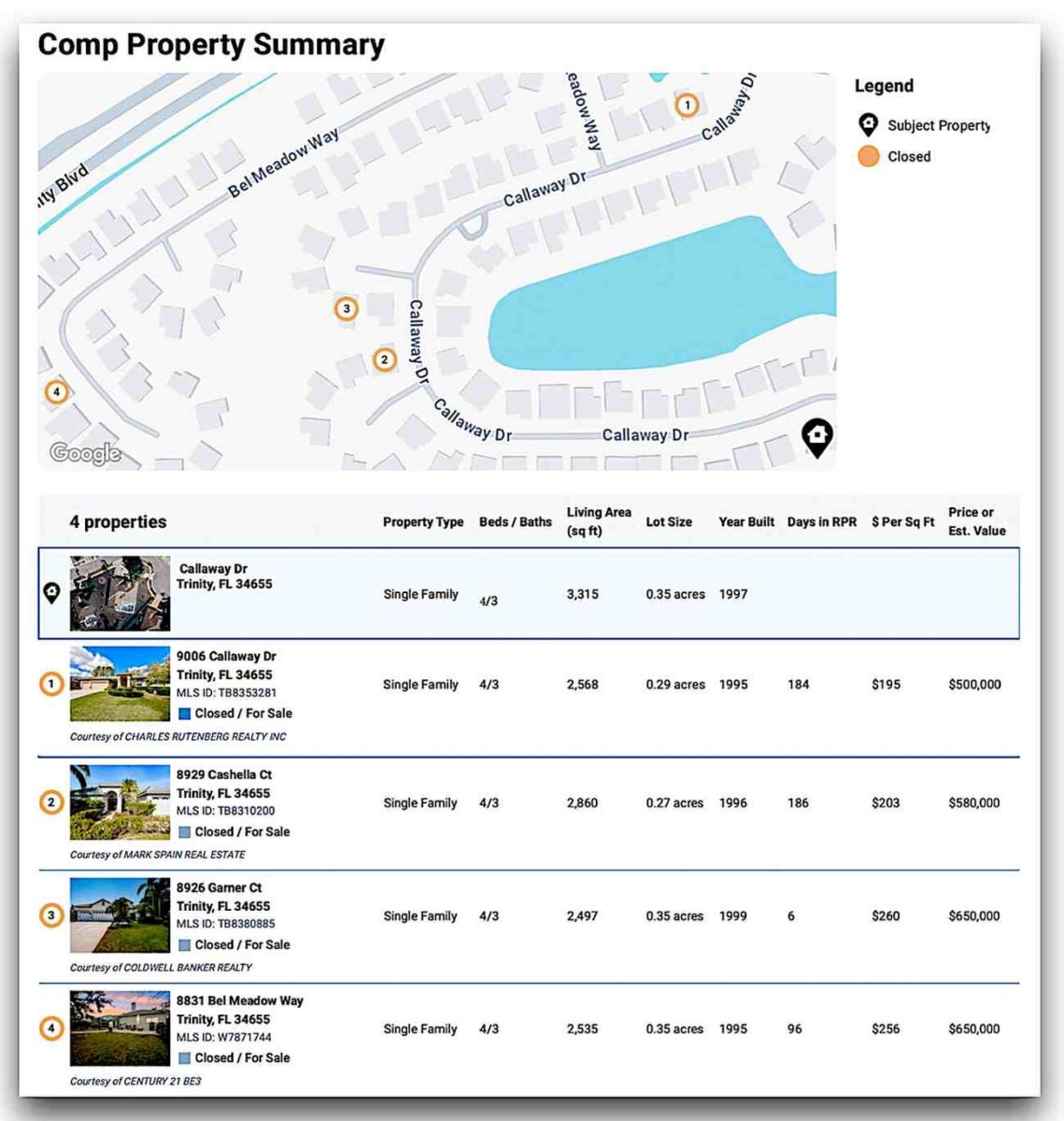 - 9006 Callaway Dr – 2,568 sf → Sold $500,000 ($195/sf) – updated