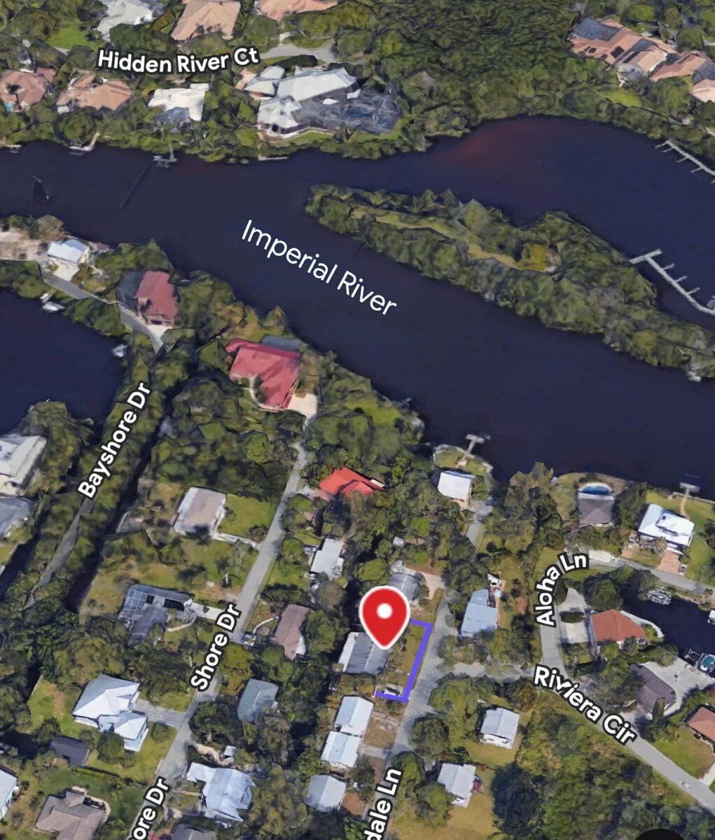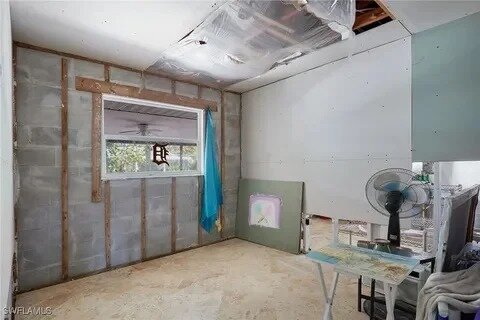 This 3-bed, 2-bath, 1,362 sf CBS home built in 1971 sits on a 7,318 sf canal-front lot in Bonita Springs with direct access to the Imperial River. The property sustained hurricane damage and currently has an open code violation for unpermitted partial repairs. Structural cracking is visible along the seawall, and the interior requires full restoration. Once rebuilt and brought into FEMA and city compliance, the home has strong resale potential given nearby renovated canal homes selling in the high-$400s.
