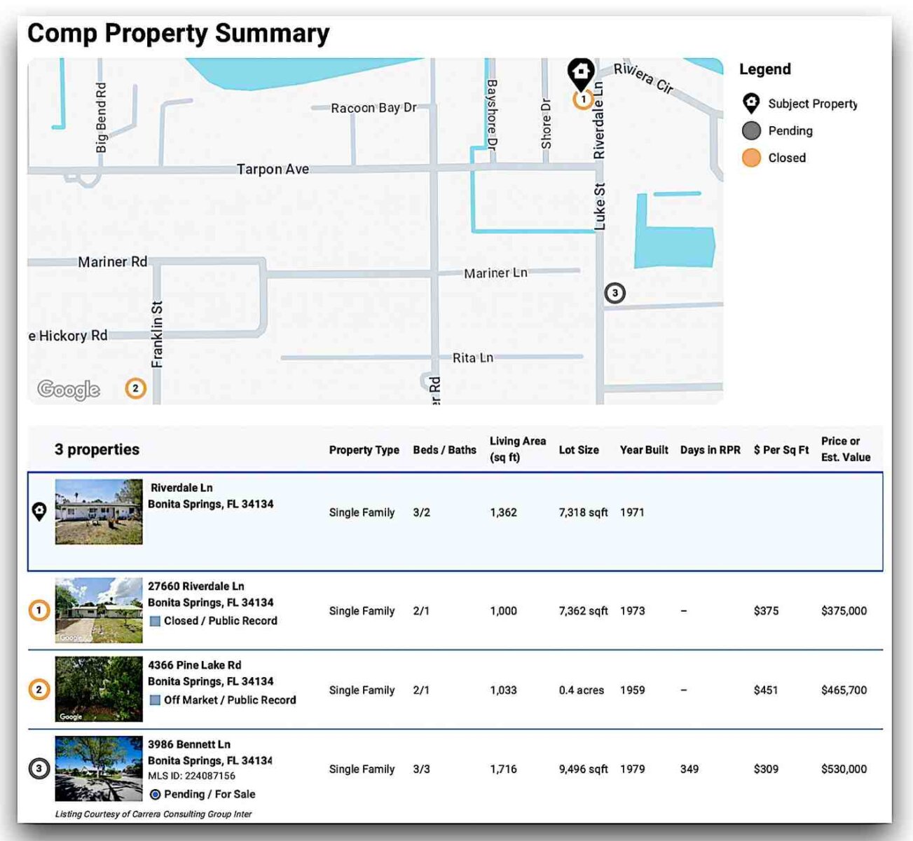 Based on these comps, the ARV is estimated around $499,000, depending on restoration quality and FEMA compliance scope.