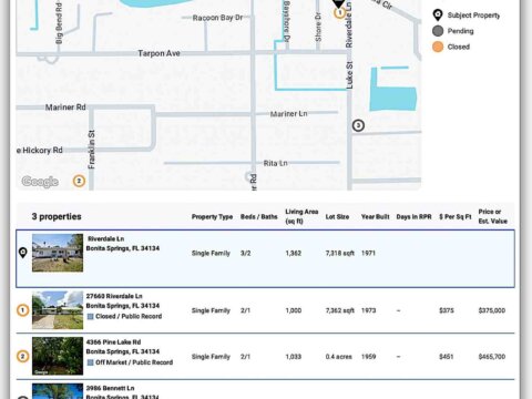 - 27660 Riverdale Ln – 2/1 | 1,000 sf | 1973 | $375,000 ($375/sf) – Renovated canal area